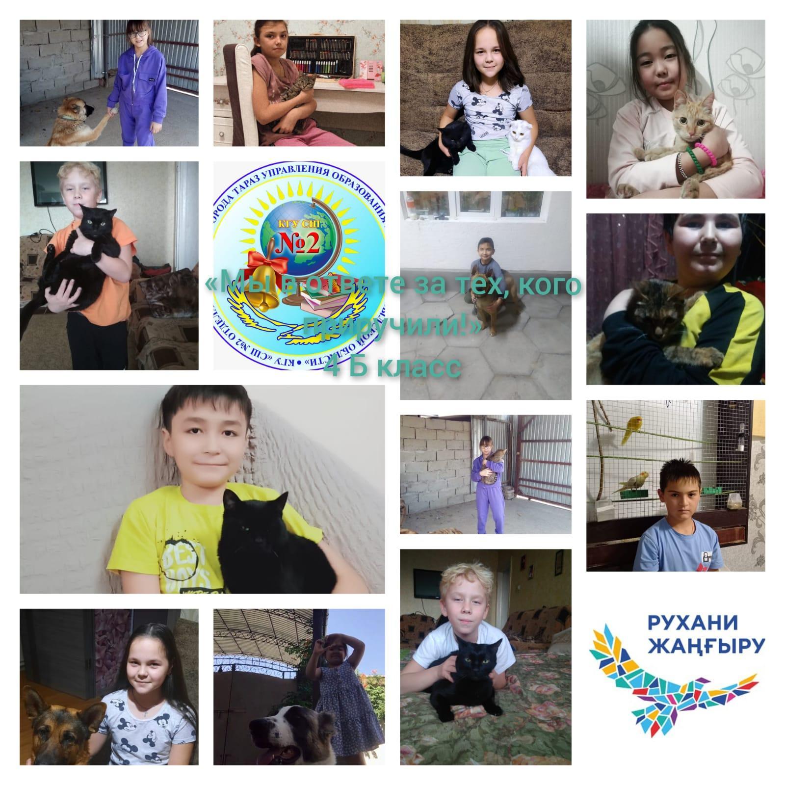 05 ақпан 2022 Челлендж в 4 Б В 4 Б классе прошел челлендж на тему: "Мы в ответе за тех, кого приручили!", целью которого является бережное отношение к животным и воспитание доброты и нравственности в детях.