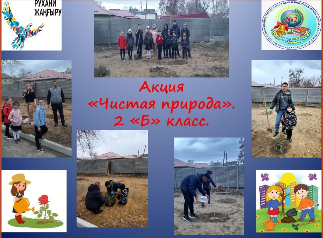 С целью бережного отношения к окружающей среде,сохранения экологии родного края,учениками были посажены саженцы девьев и кустарников на территории школы-сирень и карагач. Акция"Чистая природа" будет продолжена. » СШ №2