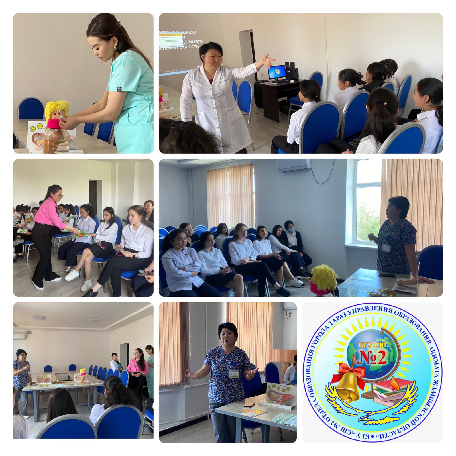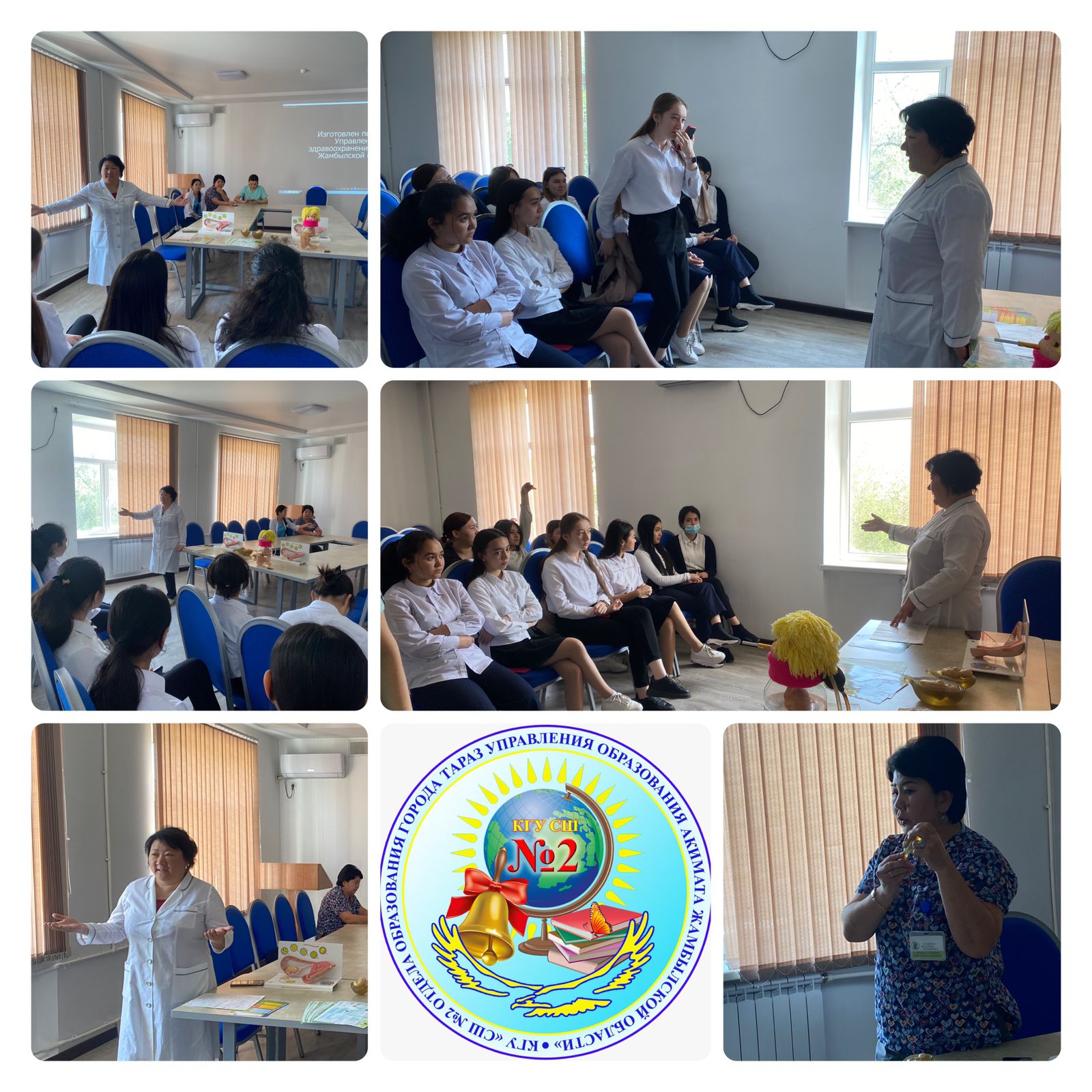 В рамках реализации плана работы клуба"Кыз Жибек", нравственно-полового воспитания девушек,формирования понятия женственности,самооценки своего поведения,ответственного отношения к своему здоровью,зам. директора по ВР :Щелоковой Т.А,Смадиловой А.Ж,психологом Тансык А.С. ,социологом Дильдебаевой Д.Б., совместно с членами клуба "Кыз Жибек",девушками 9-х классов и специалистами МЦЗ "Жигер" поликлиники "ZHANUJA"была проведена встреча- тренинг на тему:"Девичья честь,мужская гордость."В ходе встречи с учащимися были обсуждены такие темы, как: "Гигиена тела","Репродуктивное здоровье.Гигиена","Профилактика ранней беременности',освещены медицинские,психологические,социальные и юридические аспекты ранних половых связей и их последствий.