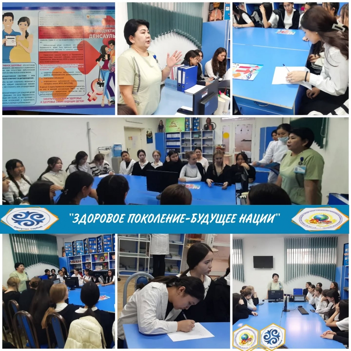 В рамках годового плана Клуба "Қыз Жібек " и нравственно-полового воспитания с девочками 7-х классов была проведена лекция-беседа на тему: " Здоровое поколение-будущее нации". Данная лекция, была проведена совместно со специалистами МЦ "Жігер" и городской поликлиники# 1 " Zhanya", врачом акушер-гинекологом -Касымовой и психологом Сулиановой В данной лекции были озвучены вопросы относительно репродуктивного здоровья девочки.