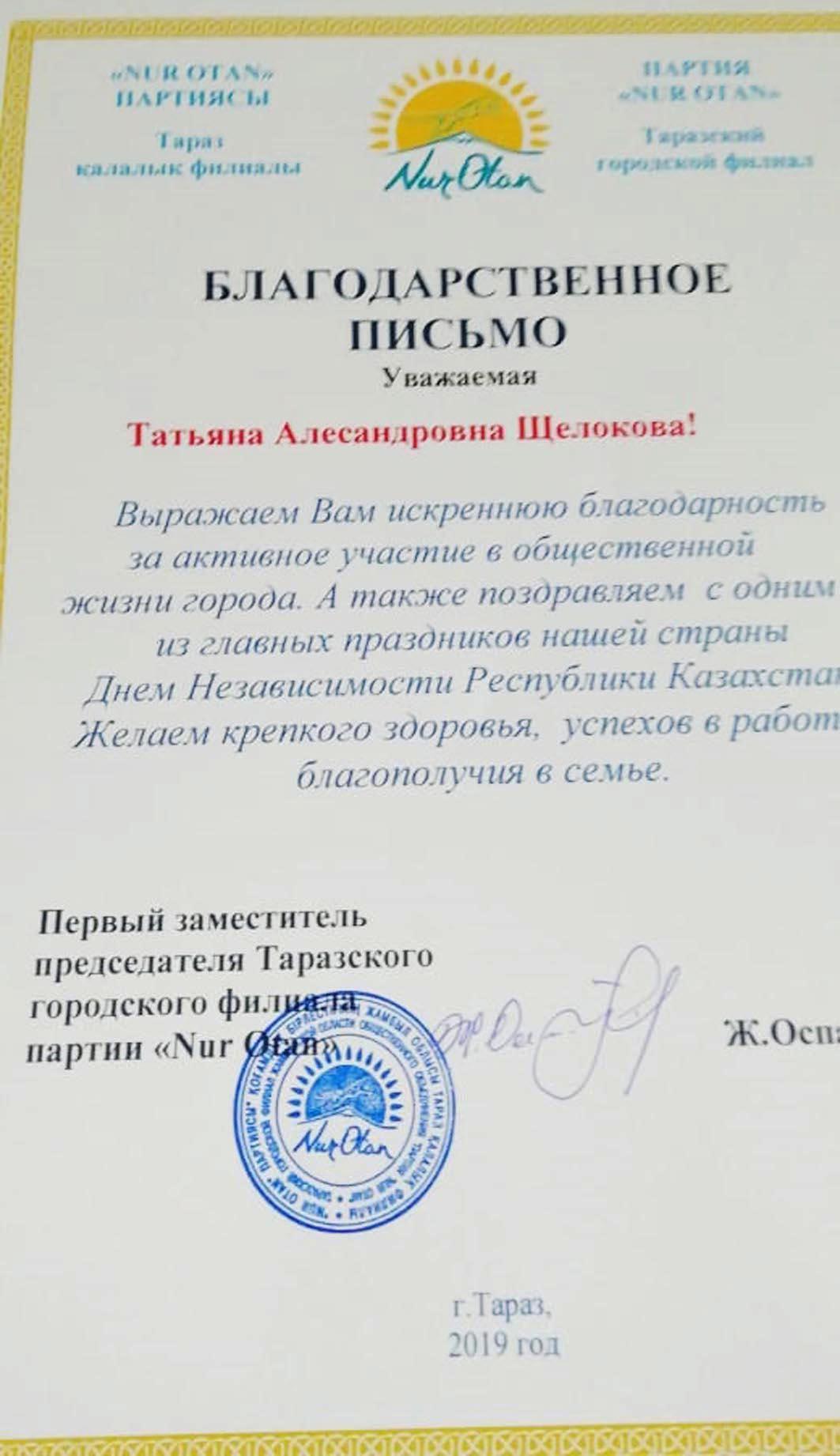 Благодарственное письмо - Щелокова Т. А. » СШ №2