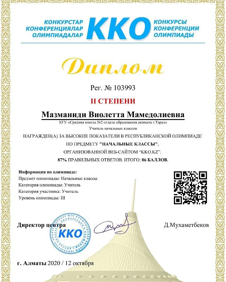 Мазманиди В. М. - Диплом II степени » СШ №2