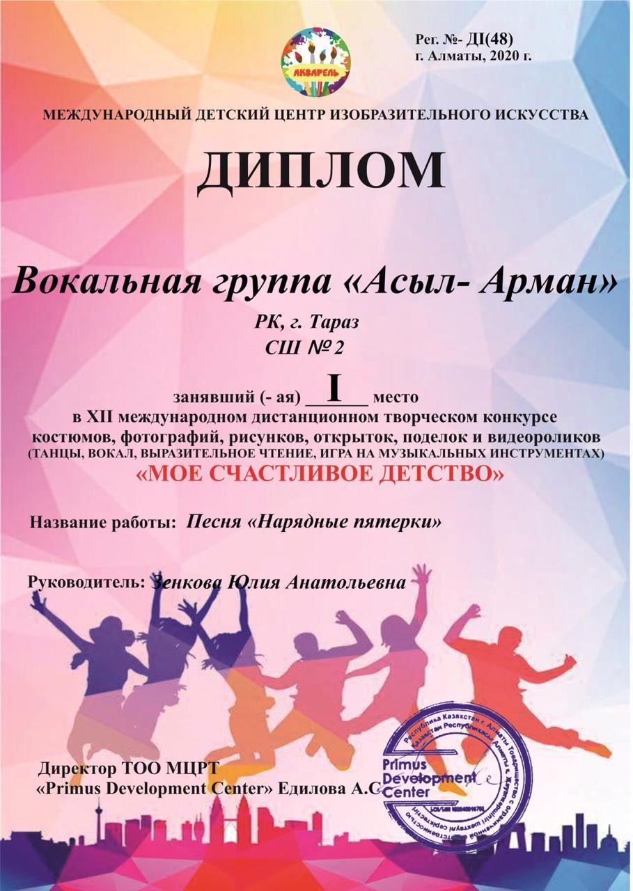 24 қараша 2020 Поздравляем наших победителей и их наставников:Ахметалиеву Д З.,Зенкову Ю.А. с победой в творческих конкурсах!