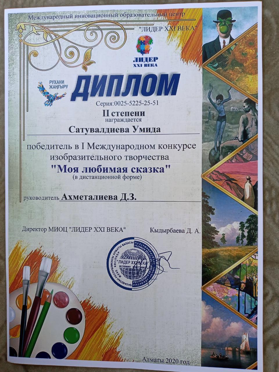 Диплом II степени награждается Сатувалдиева Умида » СШ №2