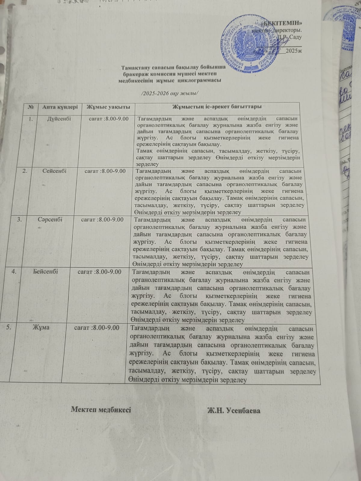 Мектеп медбикесінің жұмыс циклограммасы » СШ №2