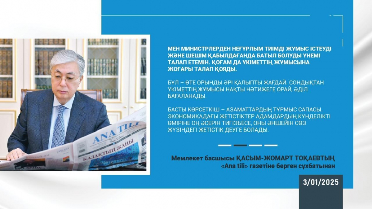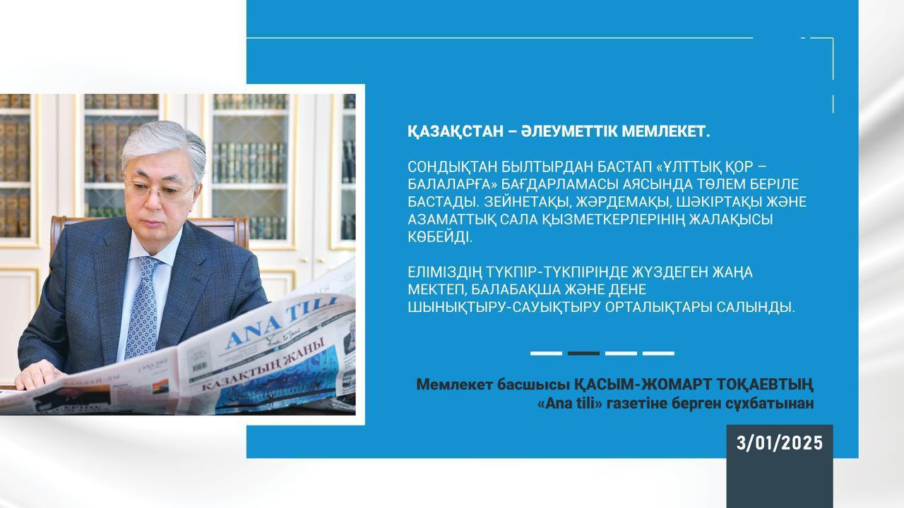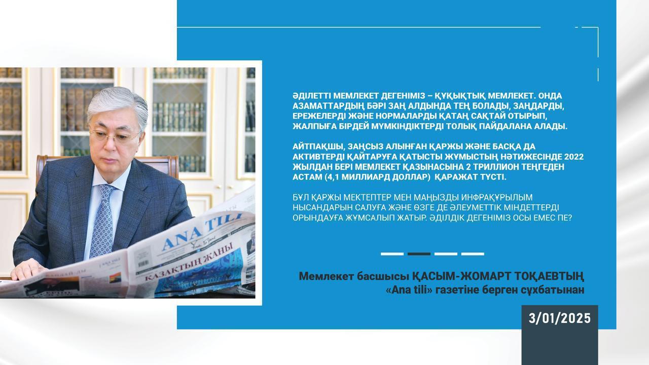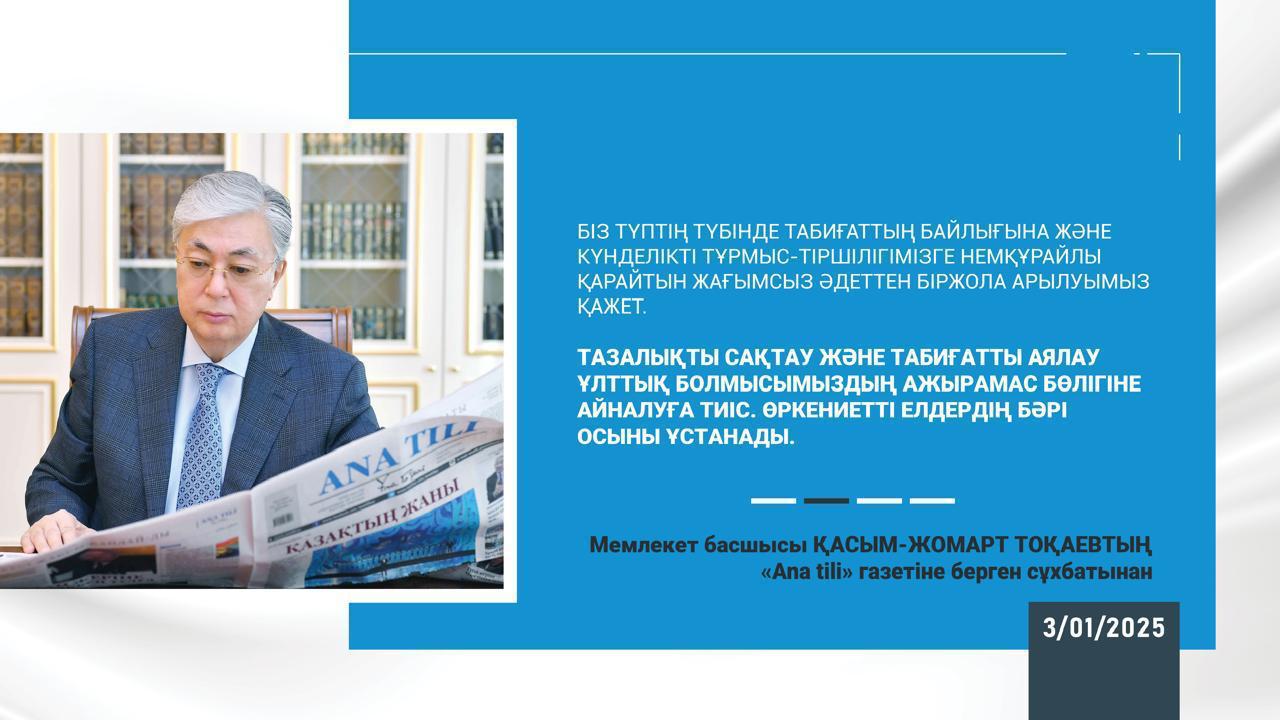 03 январь 2025 0 1 2 3 4 5 Мемлекет басшысы Қасым-Жомарт Тоқаевтың "Ana tili" газетіне берген сұхбатынан