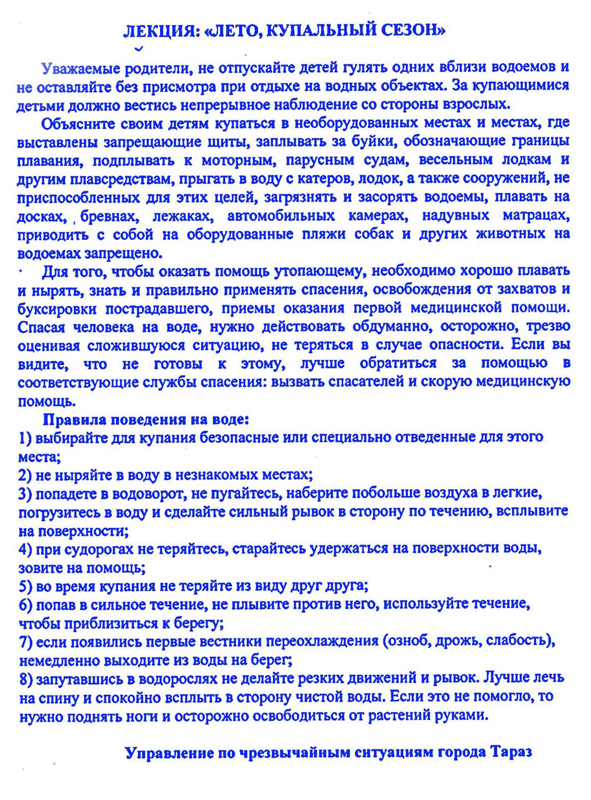 » » Лекция: "Лето, купальный сезон" от управления по ЧС
