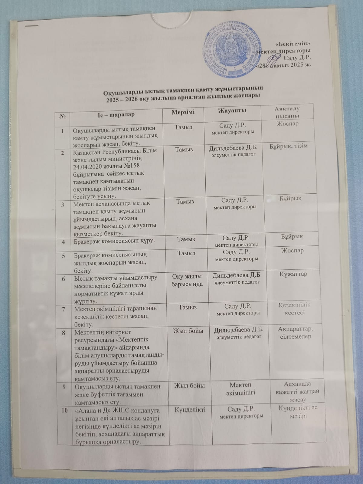 2025-2026 оқу жылына арналған жылдық жоспар » СШ №2