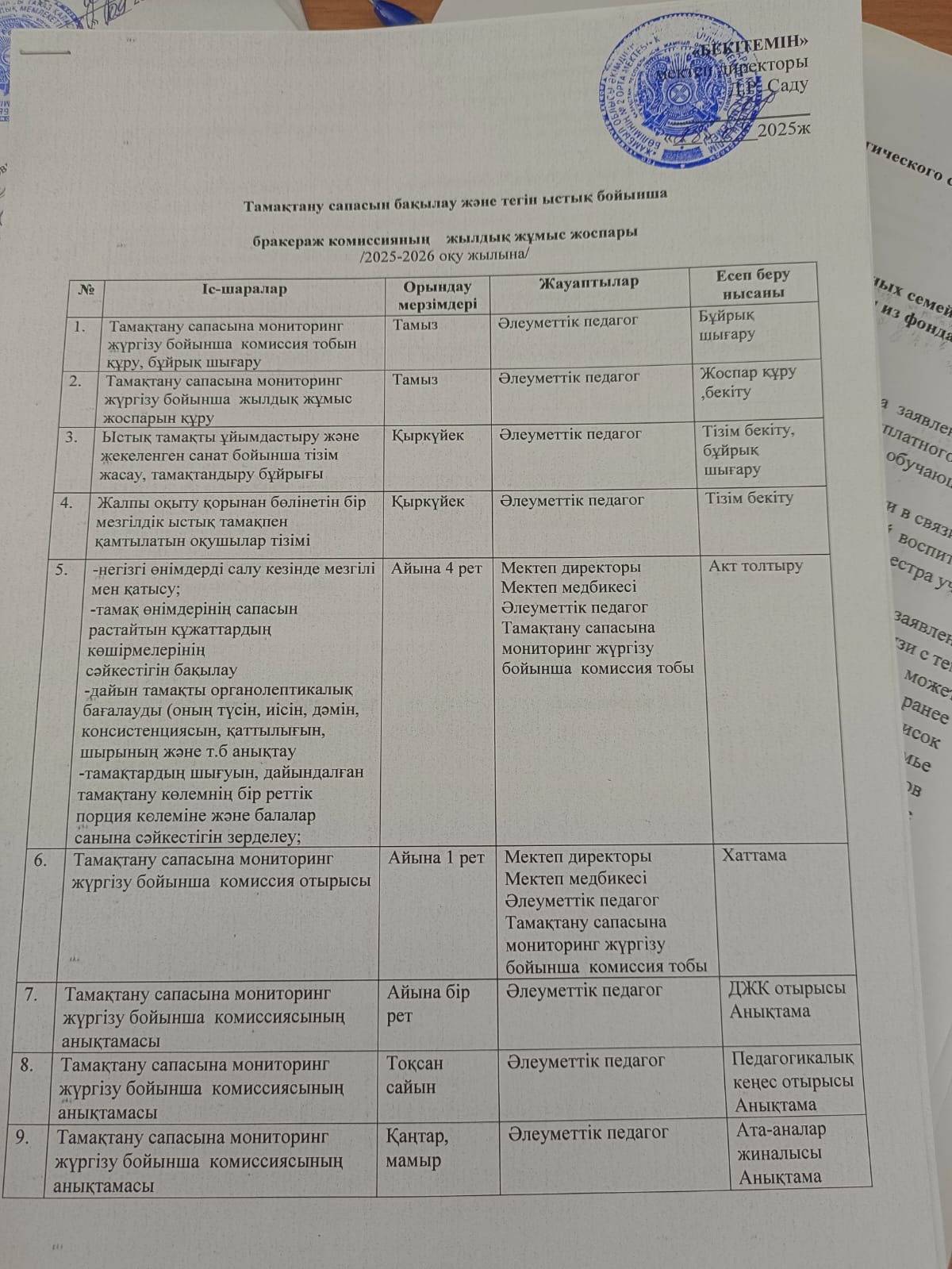 Бракераж комиссиясының жылдық жоспары » СШ №2