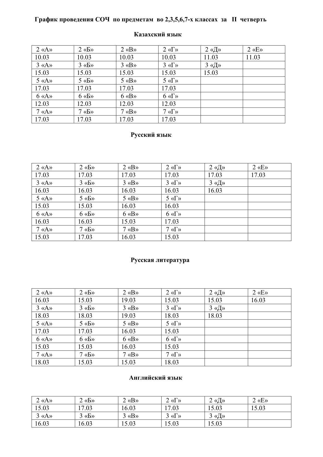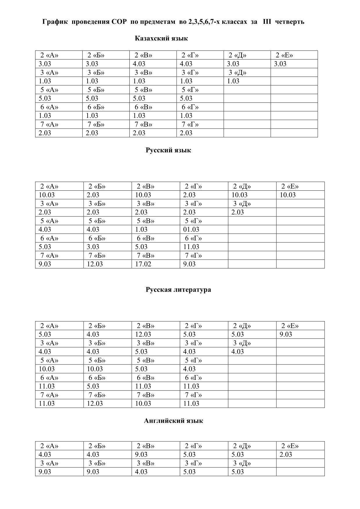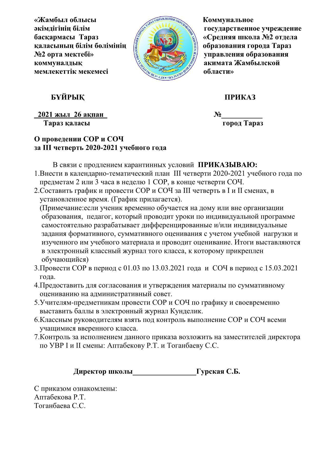 Приказ и график о проведении СОР и СОЧ за III четверть » СШ №2