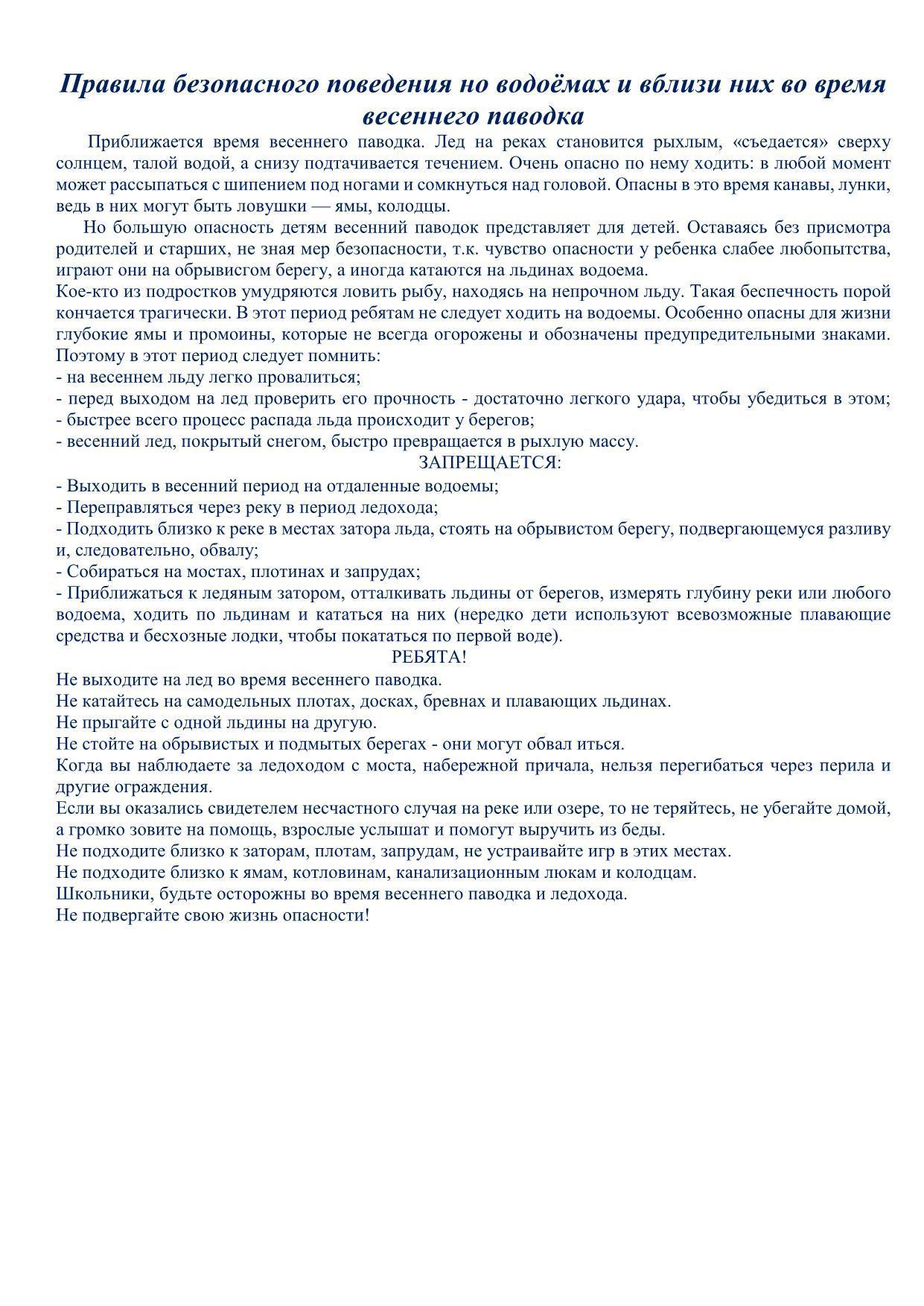 СШ №2 » Ақпарат » Материал для проведения инструктажа с обучающимися и их родителями(законными представителями) по ТБ перед наступлением весенних каникул. С уважением Татьяна Александровна