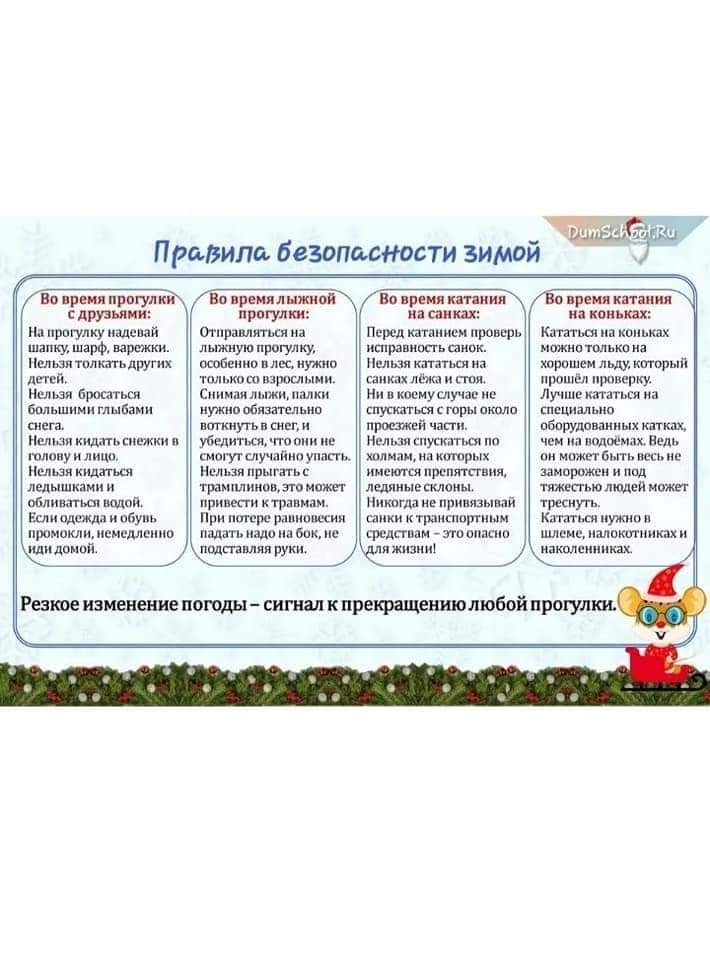 Правила поведения школьников во время зимних каникул » СШ №2