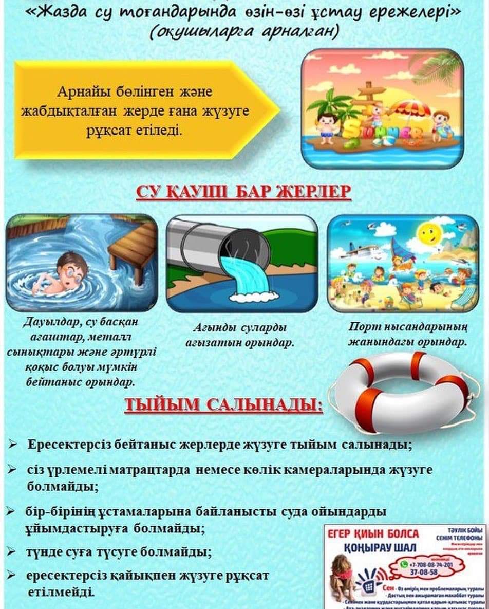 Усилить контроль за поведением детей и соблюдением ими правил безопасности на водоёмах Жамбылской области!