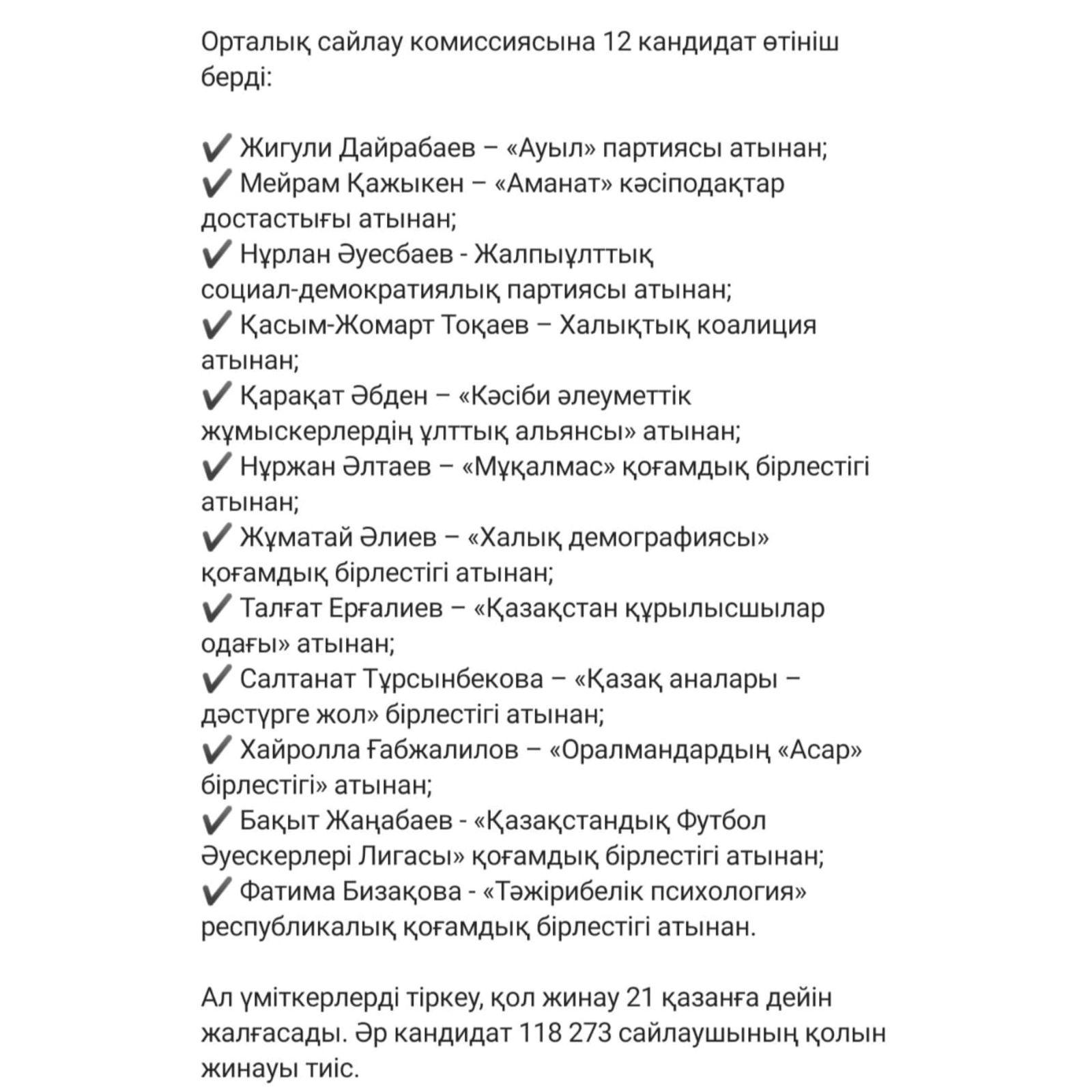 » » Президент сайлауына ұсынылған кандидаттар