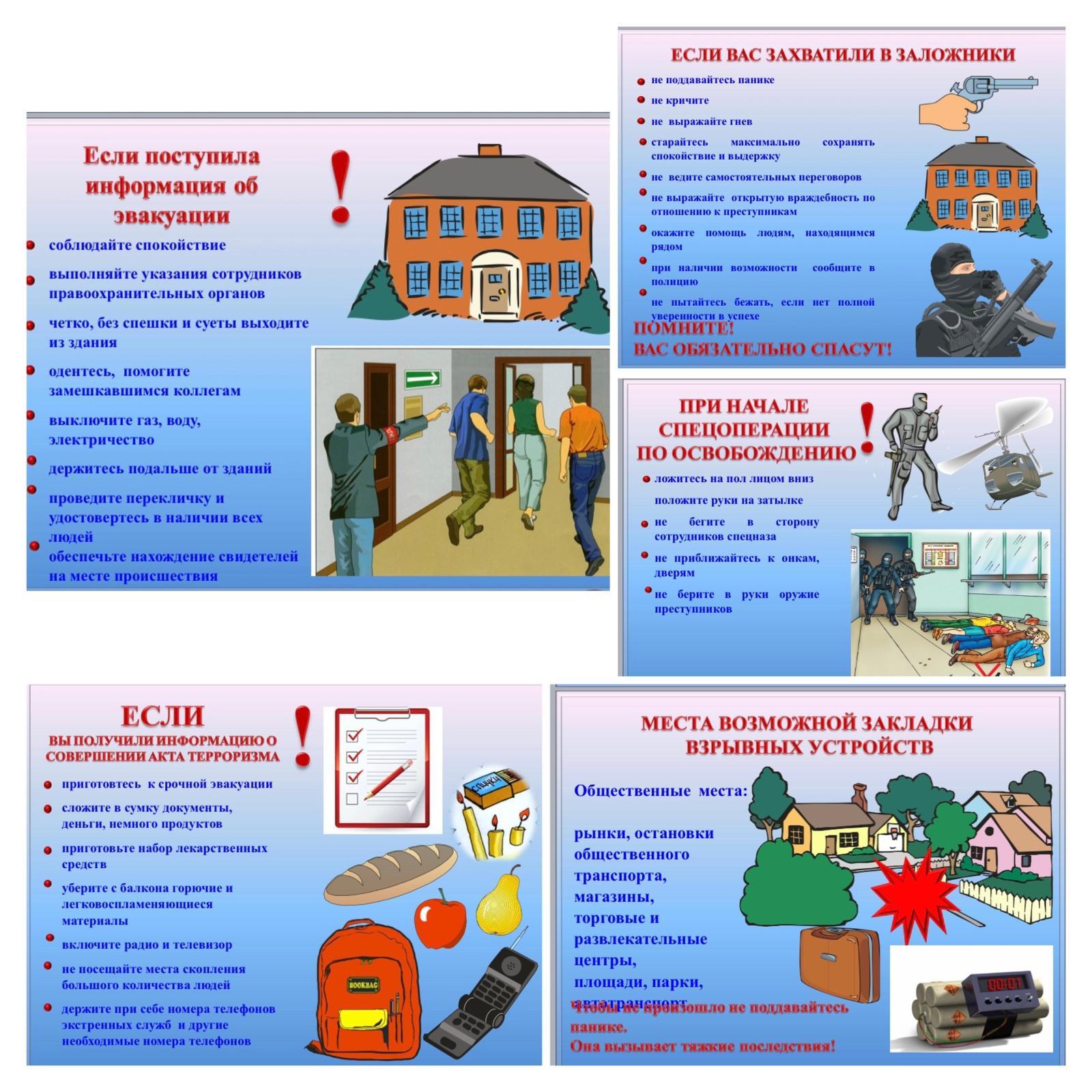 С целью формирования знаний у учащихся об антитеррористической защищённости, осведомления Вас и ваших детей о действиях и правилах поведения при угрозе или совершении акта терроризма, предлагаем вам ознакомиться с Памятками и провести беседу со своими детьми и учащимися вверенного вам класса.