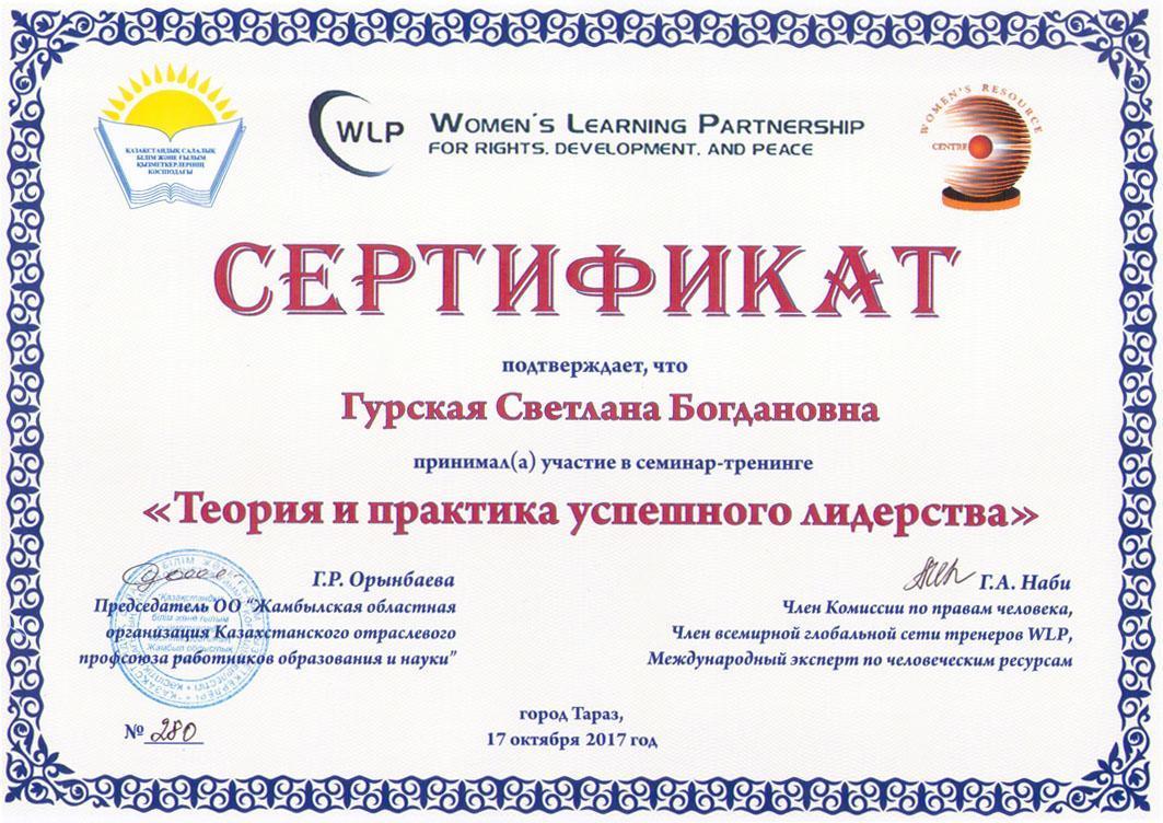 17.10.2017. Семинар – тренинг: «Теория и практика успешного лидерства».