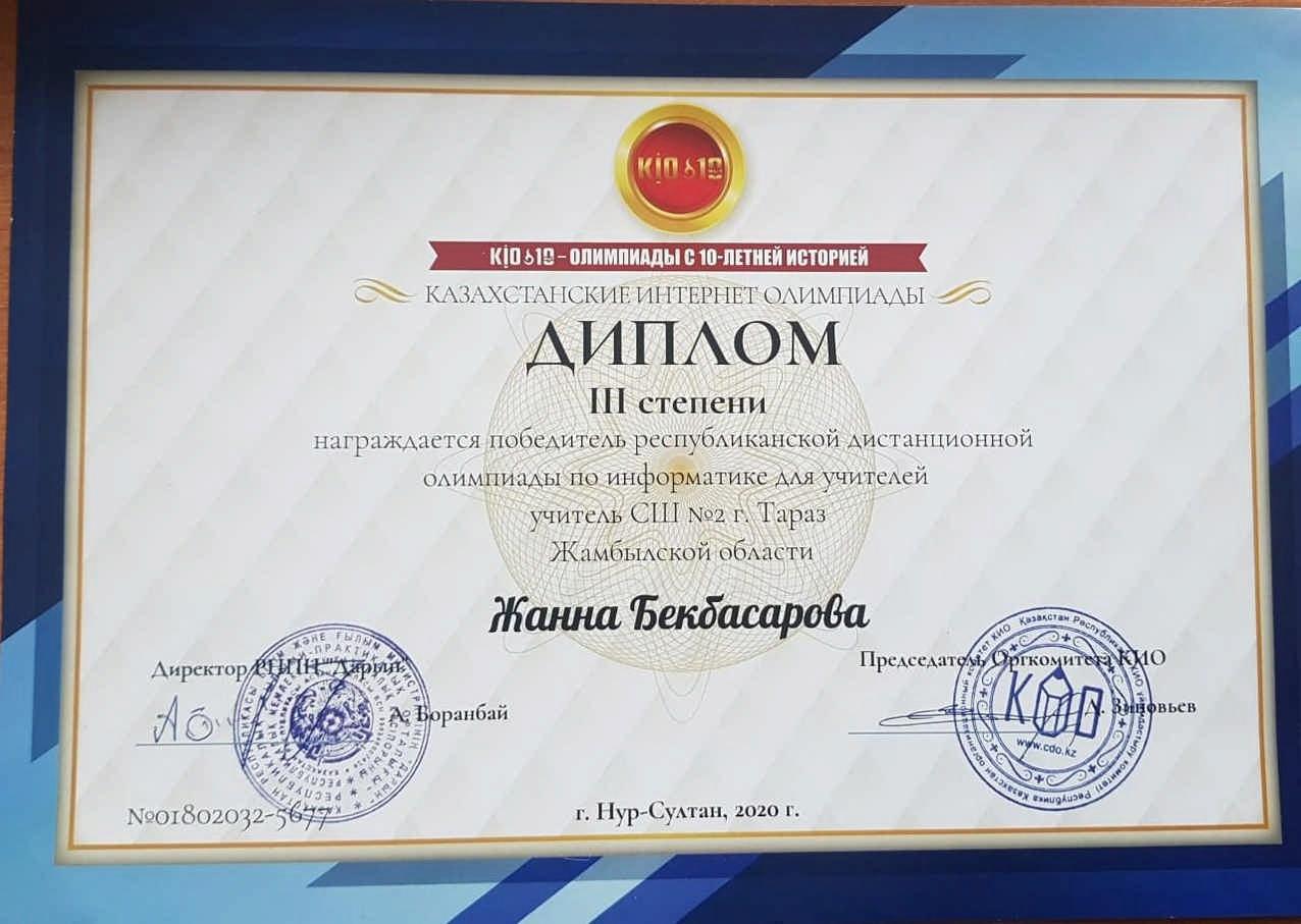 » » » Диплом 3 степени, Жанна Бекбасарова