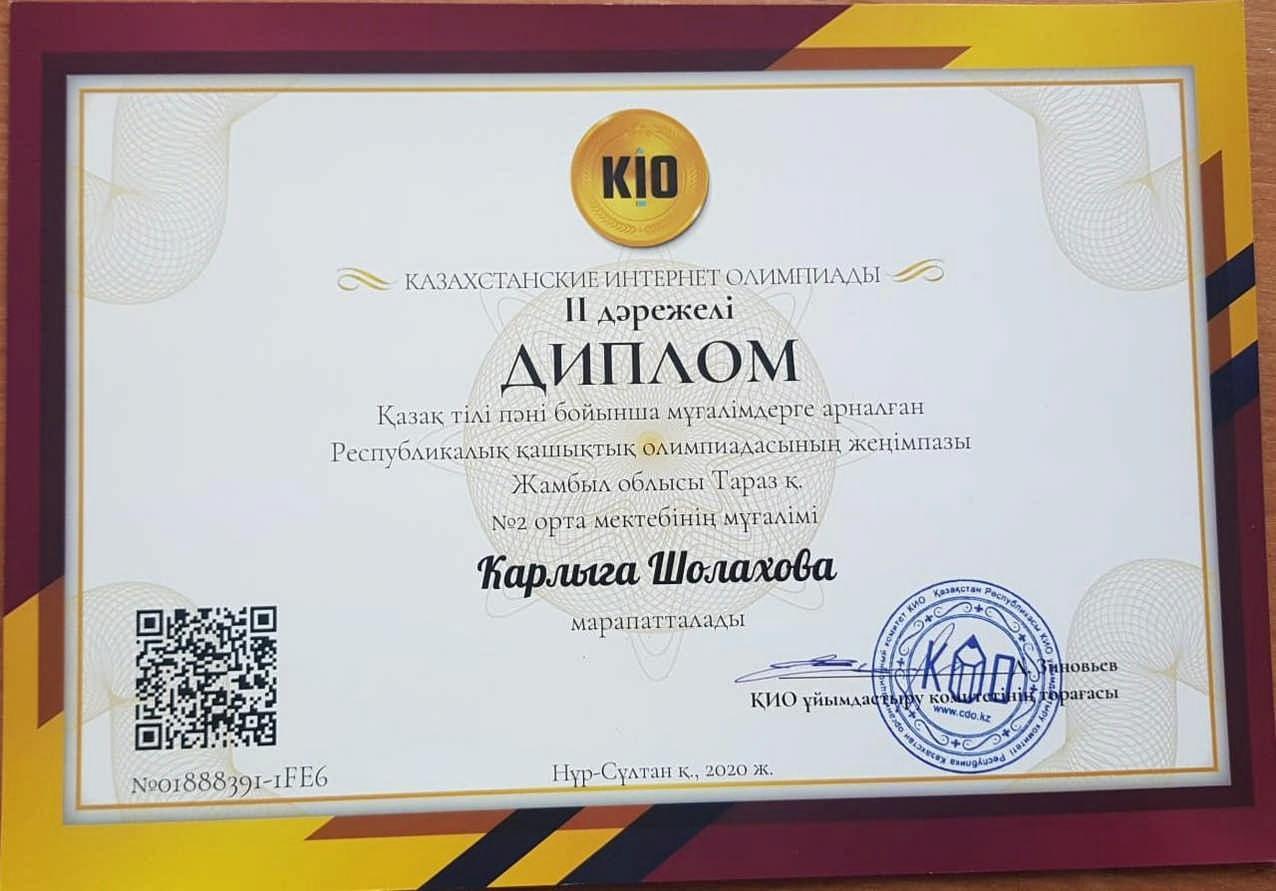 » » » Диплом 2 степени, Карлыга Шолахова