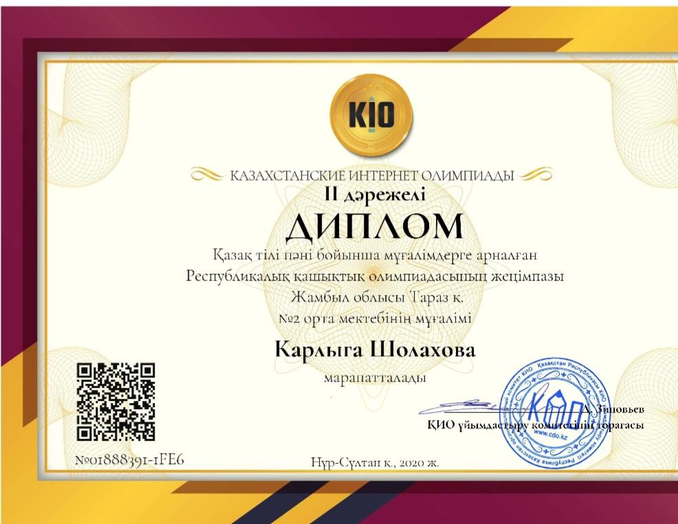» » » Диплом 2 степени, Карлыга Шолахова