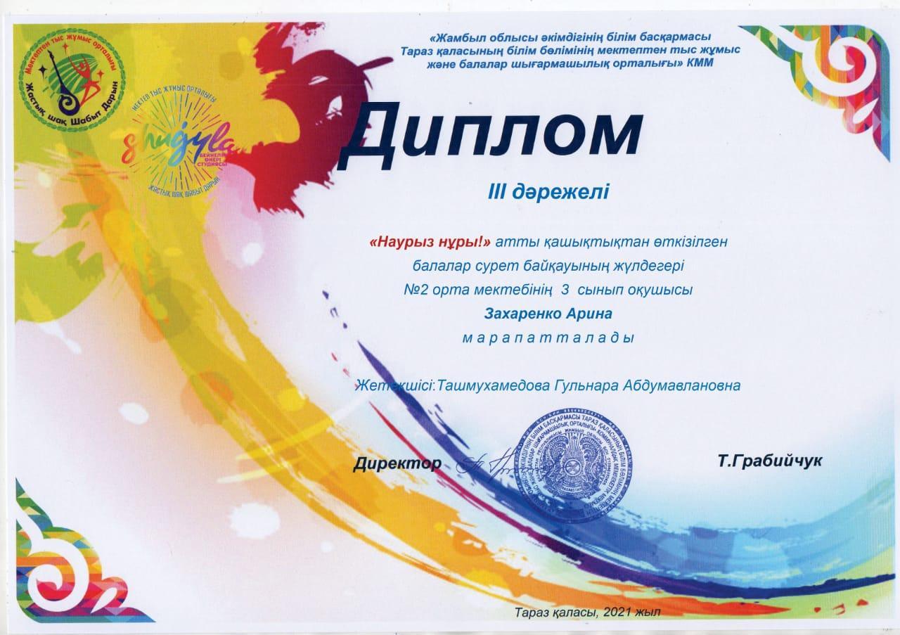 Поздравляем наших талантливых воспитанников и руководителя кружка "Чудесная мастерская" Ташмухамедову Г.А. с победой в городском конкурсе изобразительного искусства "Наурыз нұры!"