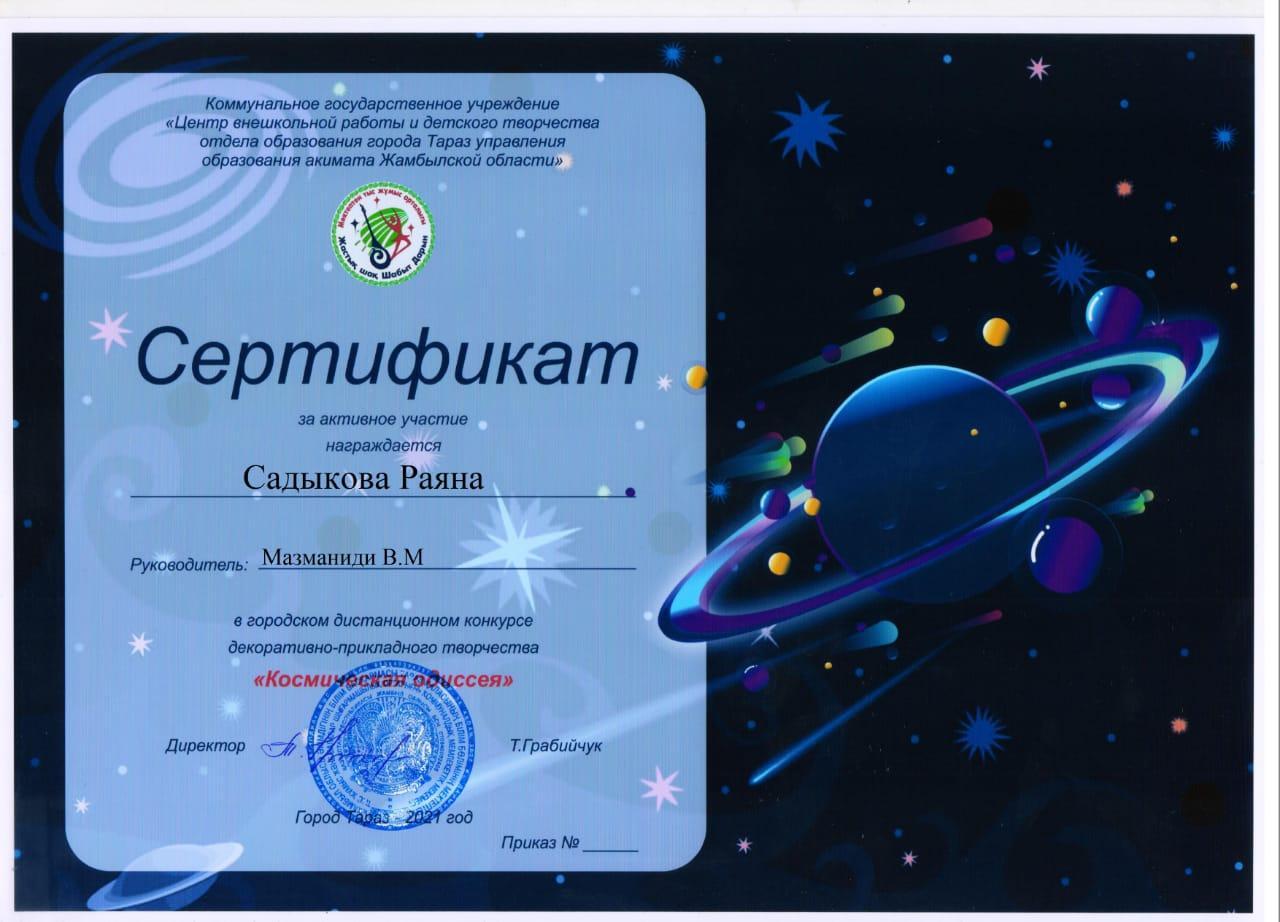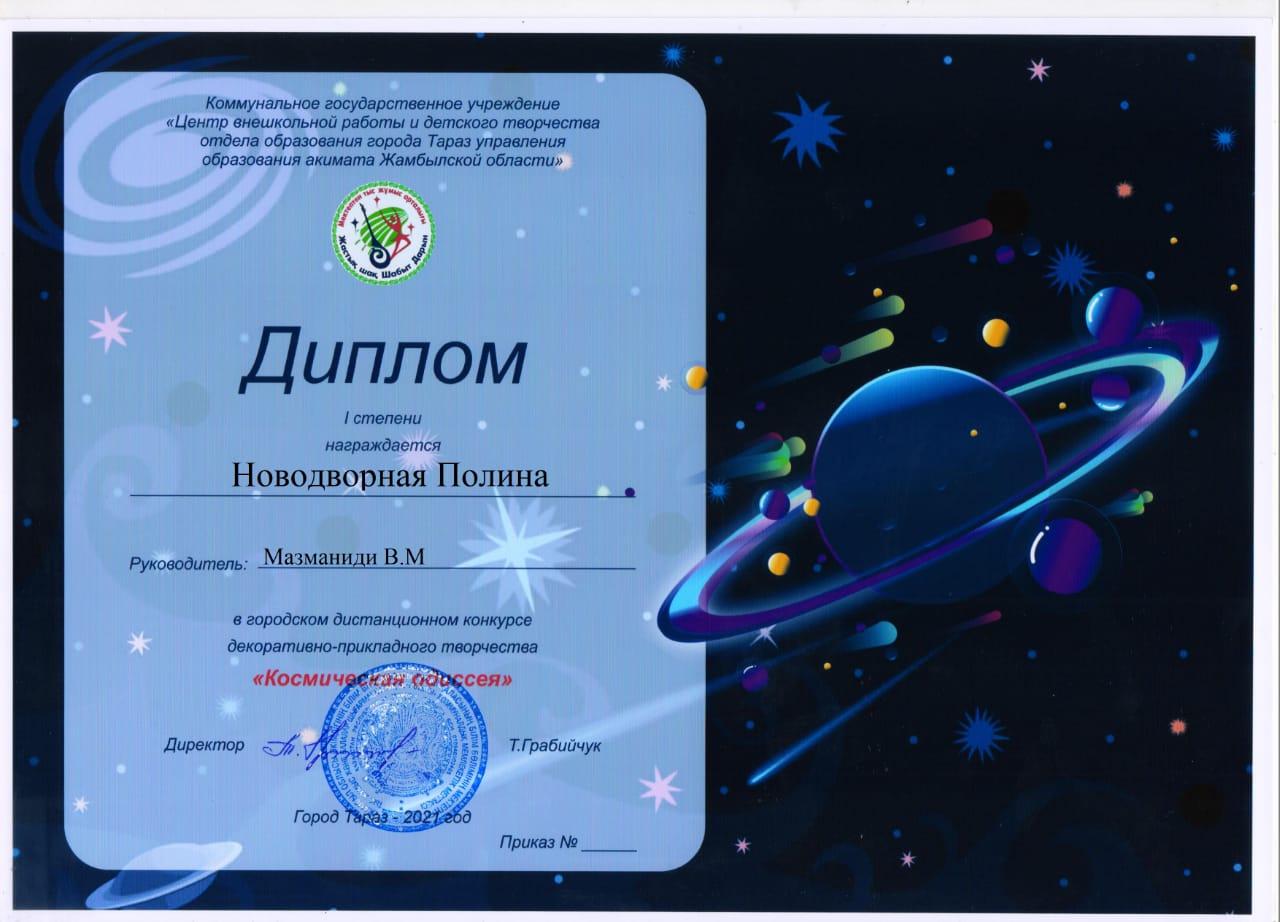 СШ №2 » Біз туралы » Жетістіктеріміз » Поздравляем победителей городского дистанционного конкурса декоративно-прикладного искусства "Космическая одиссея " и их наставника Мазманиди В.М. Так держать!