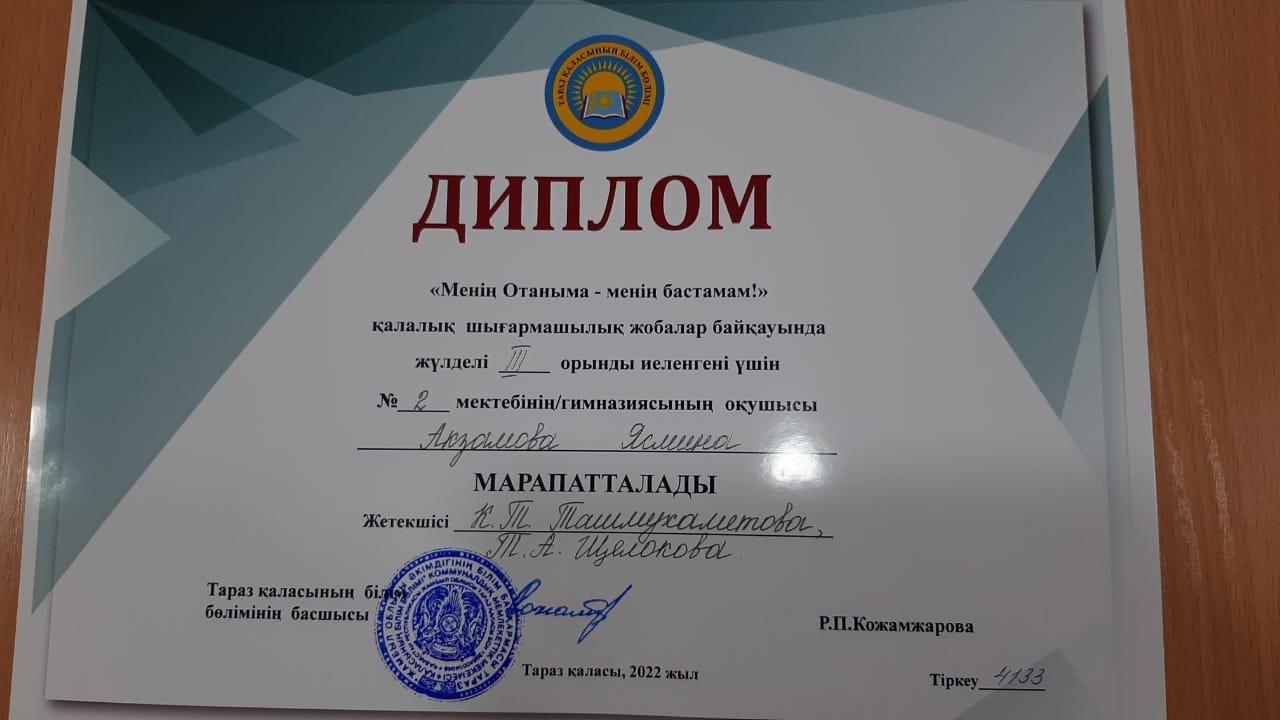 Поздравляем призёра городского конкурса проектов по воспитательной работе "Моей Родине-моя инициатива и добрые дела" экологического направления "Пластик не в тренде!" Акзамову Ясмину, ученицу 9 "В" класса, и её наставников и руководителей проекта: Ташмухаметову К.Т. и зам. директора по ВР Щелокову Т.А.!