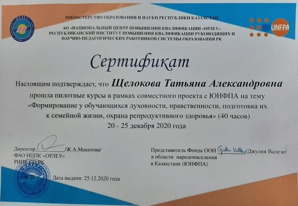 » » » Сертификат Щелокова Т. А.