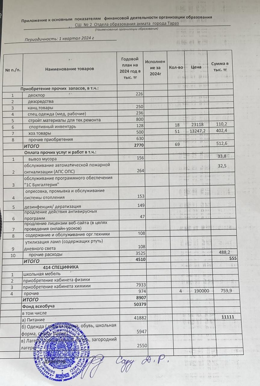 Приложение к основным показателям финансовой деятельности организации » СШ №2
