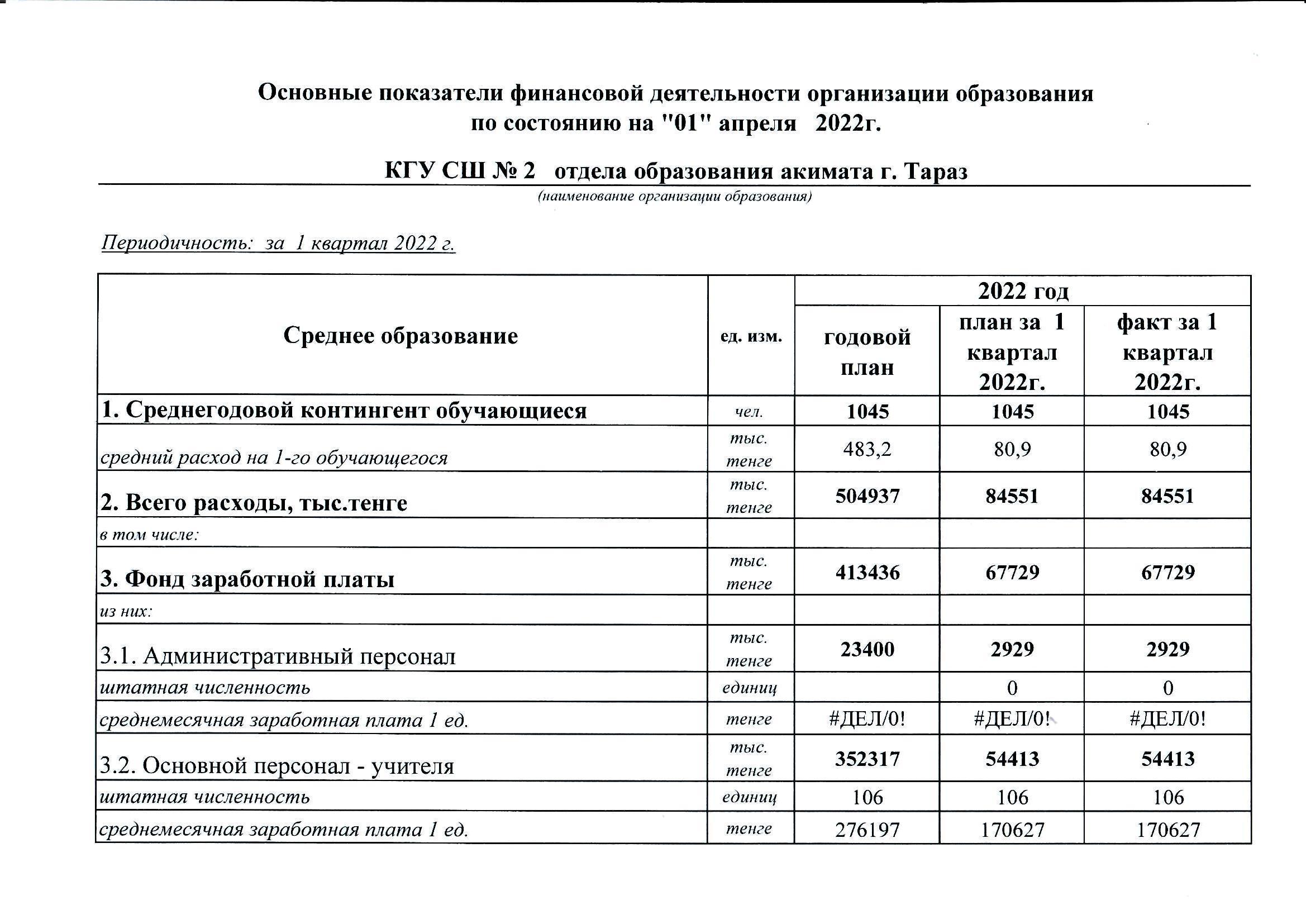 Осн. показатели фин. деят. по состоянию на 01.04.22 » СШ №2