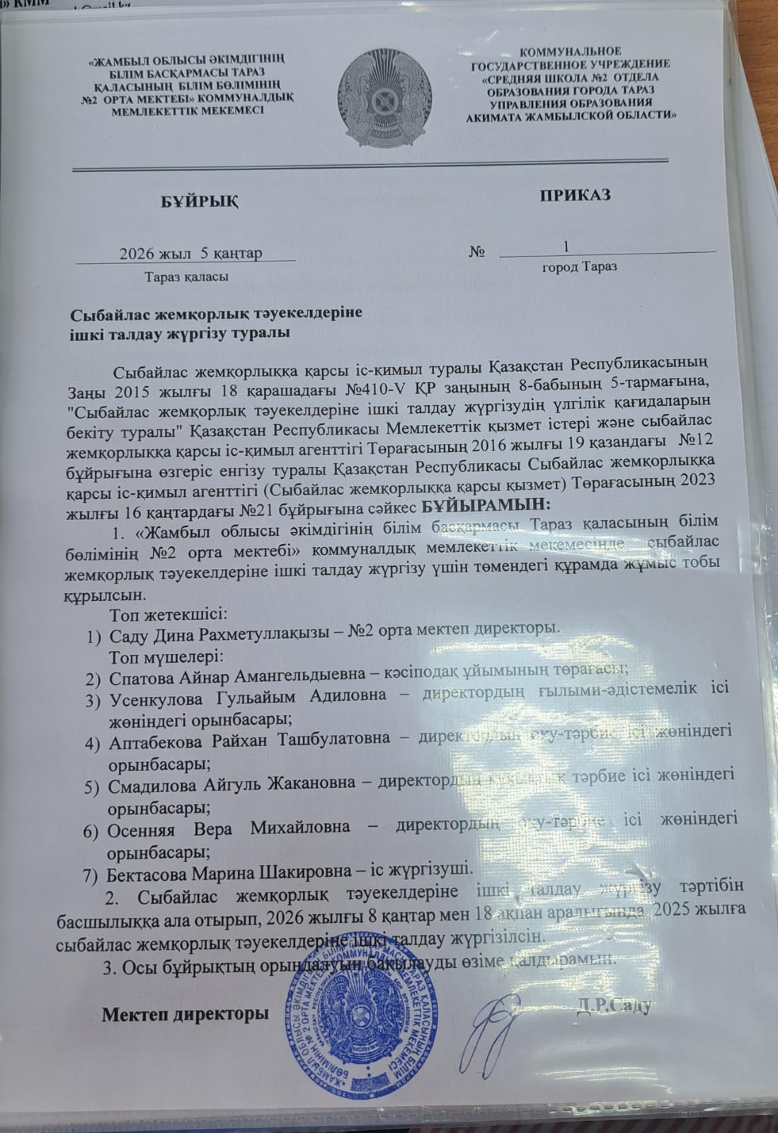 Сыбайлас жемқорлық тәуекелдеріне ішкі талдау жүргізу туралы » СШ №2