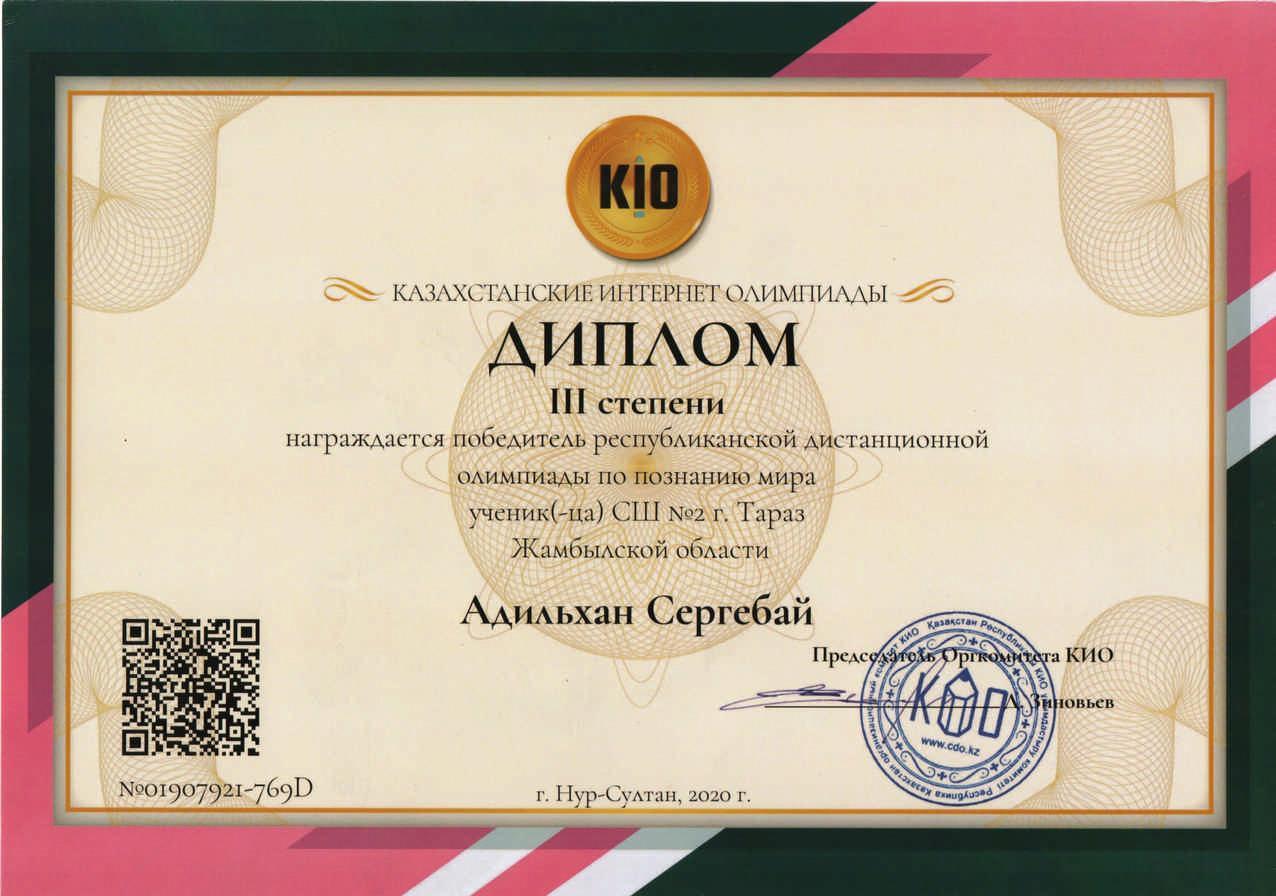 Диплом КИО, Адильхан Сергебай » СШ №2