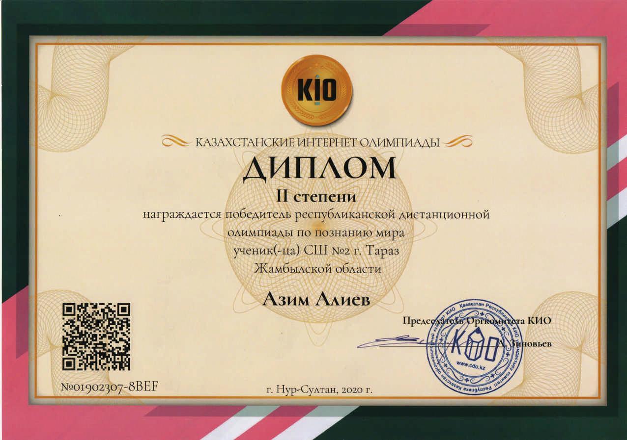 Диплом КИО, Азим Алиев » СШ №2