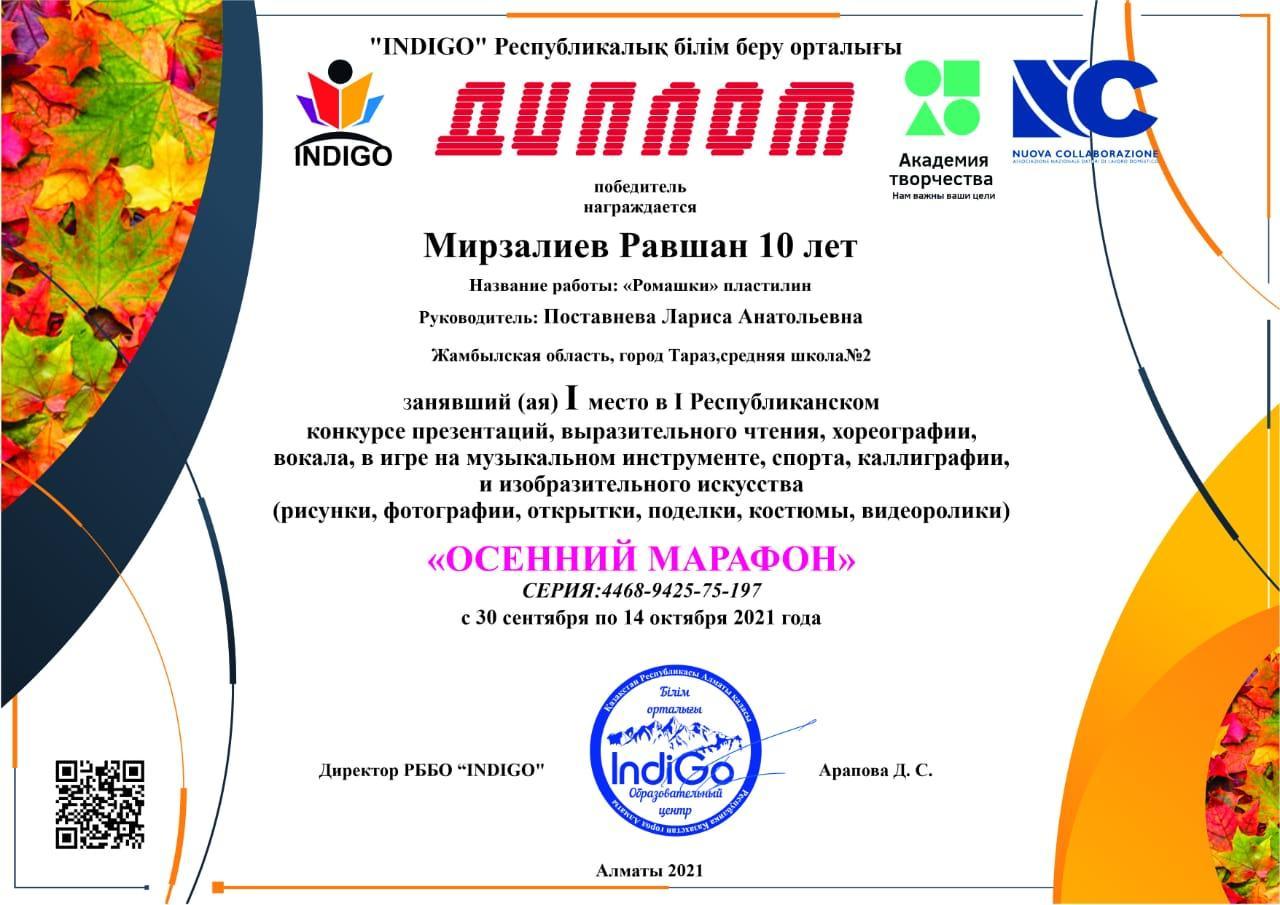 Диплом Мирзалиев Равшан » СШ №2