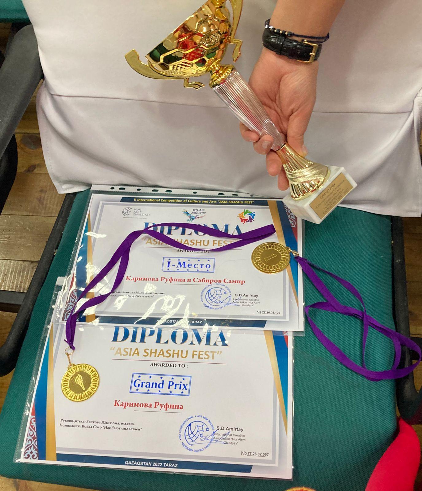 25 наурыз 2022 Республиканский вокальный конкурс Республиканский вокальный конкурс "ASIA SHASHU FEST"-2022 Каримова Руфина Сабиров Самир Прымкулов Тамирлан взяли Гран-При и 1 место.денежный сертификат от организаторов конкурса и 1место взял Прымкулов Тамирлан.