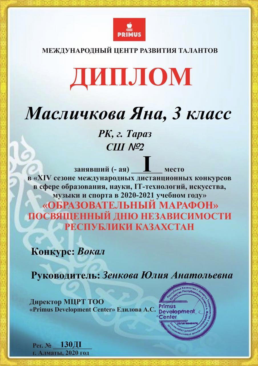 Диплом I место,Масличкова Яна