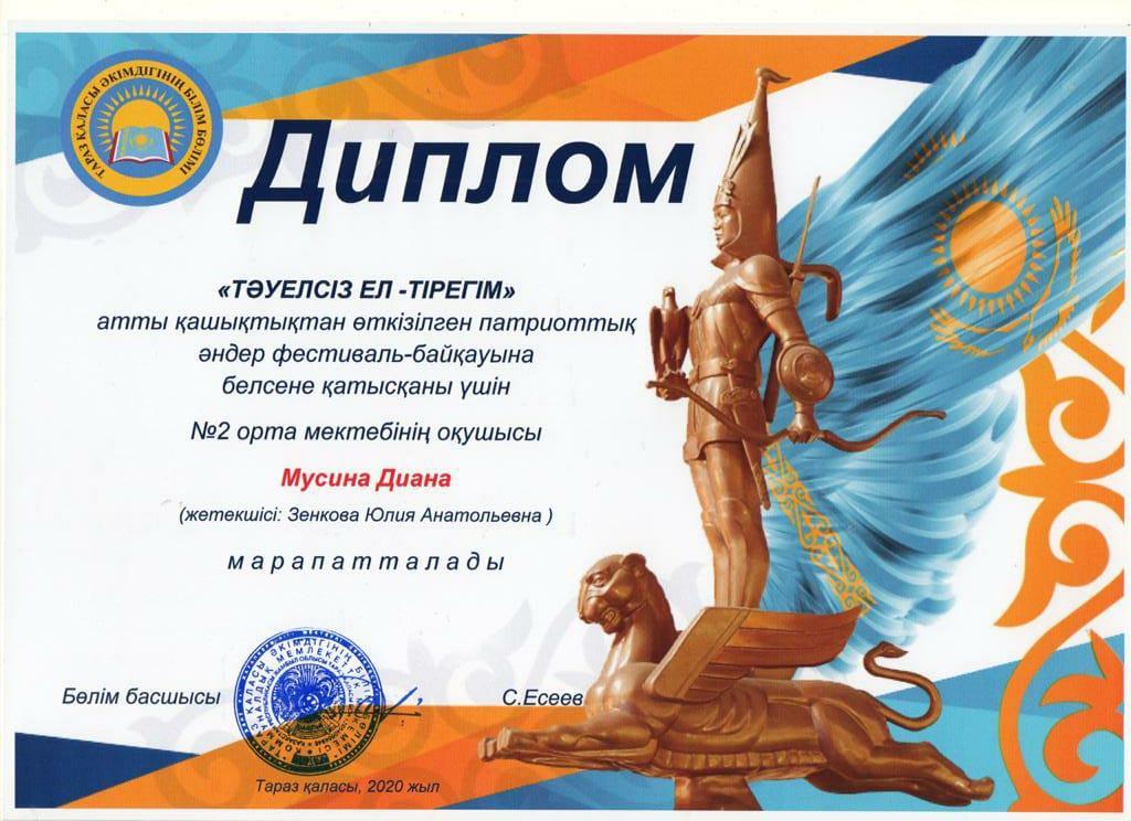 Диплом Мусина Диана » СШ №2