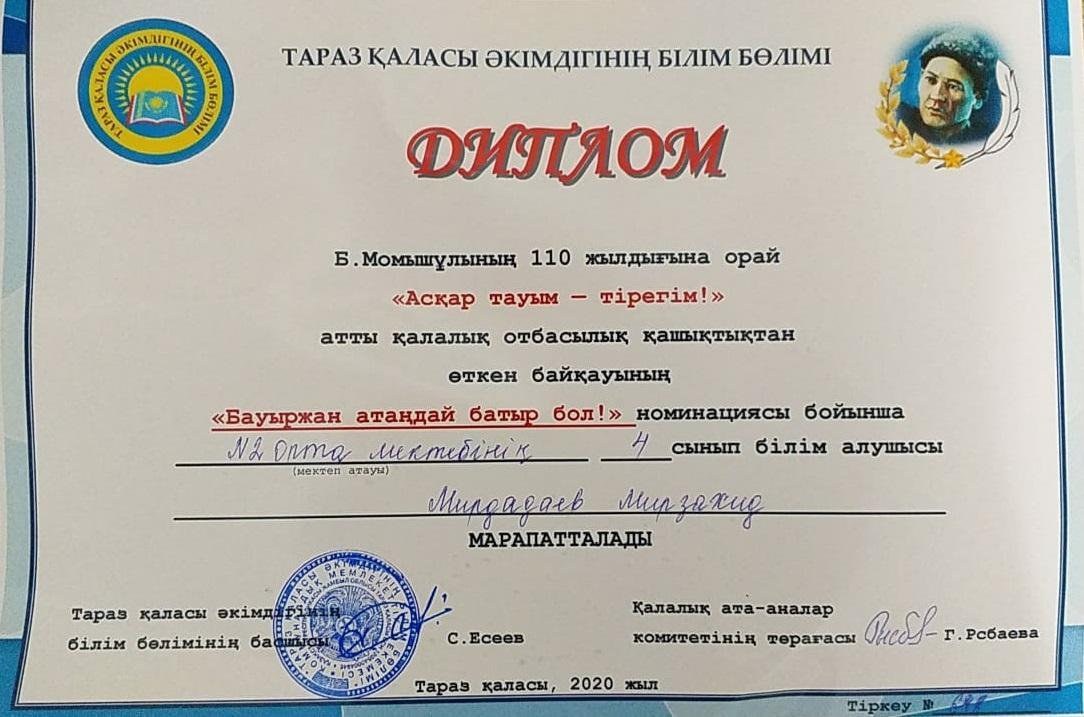 Диплом, Мирдадаев Мирзахид » СШ №2