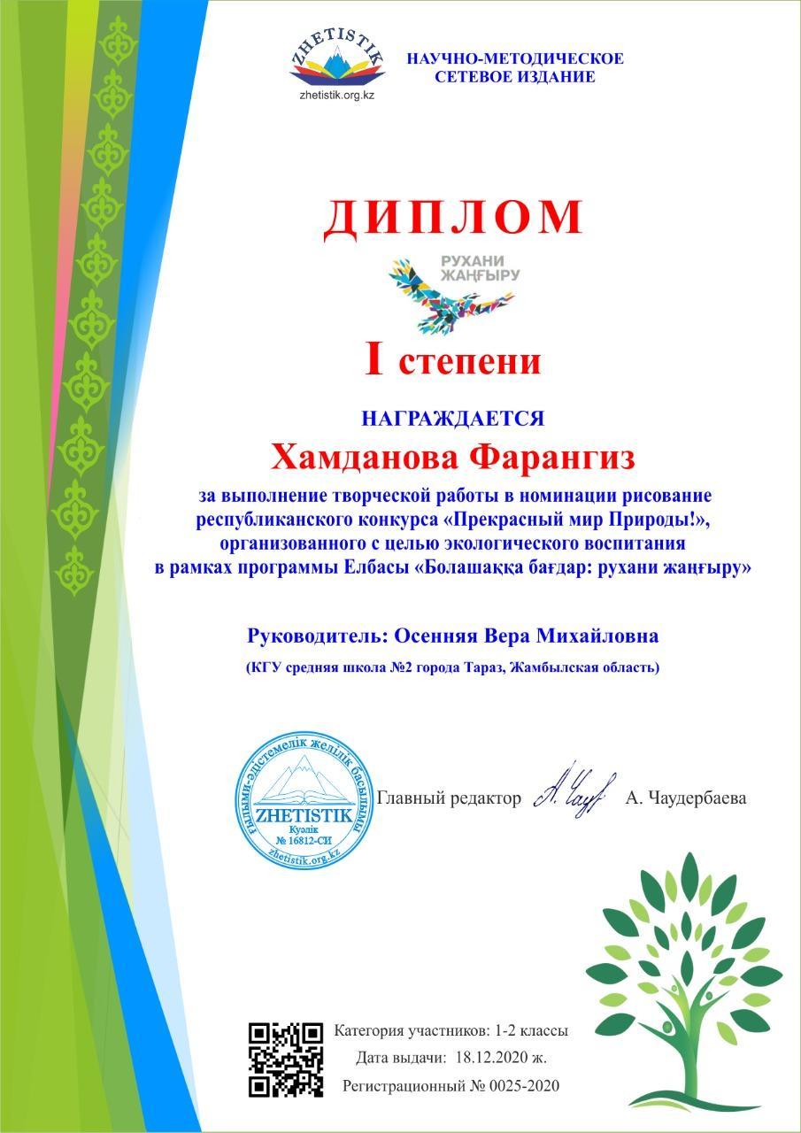 Диплом I степени, Хамданова Фарангиз
