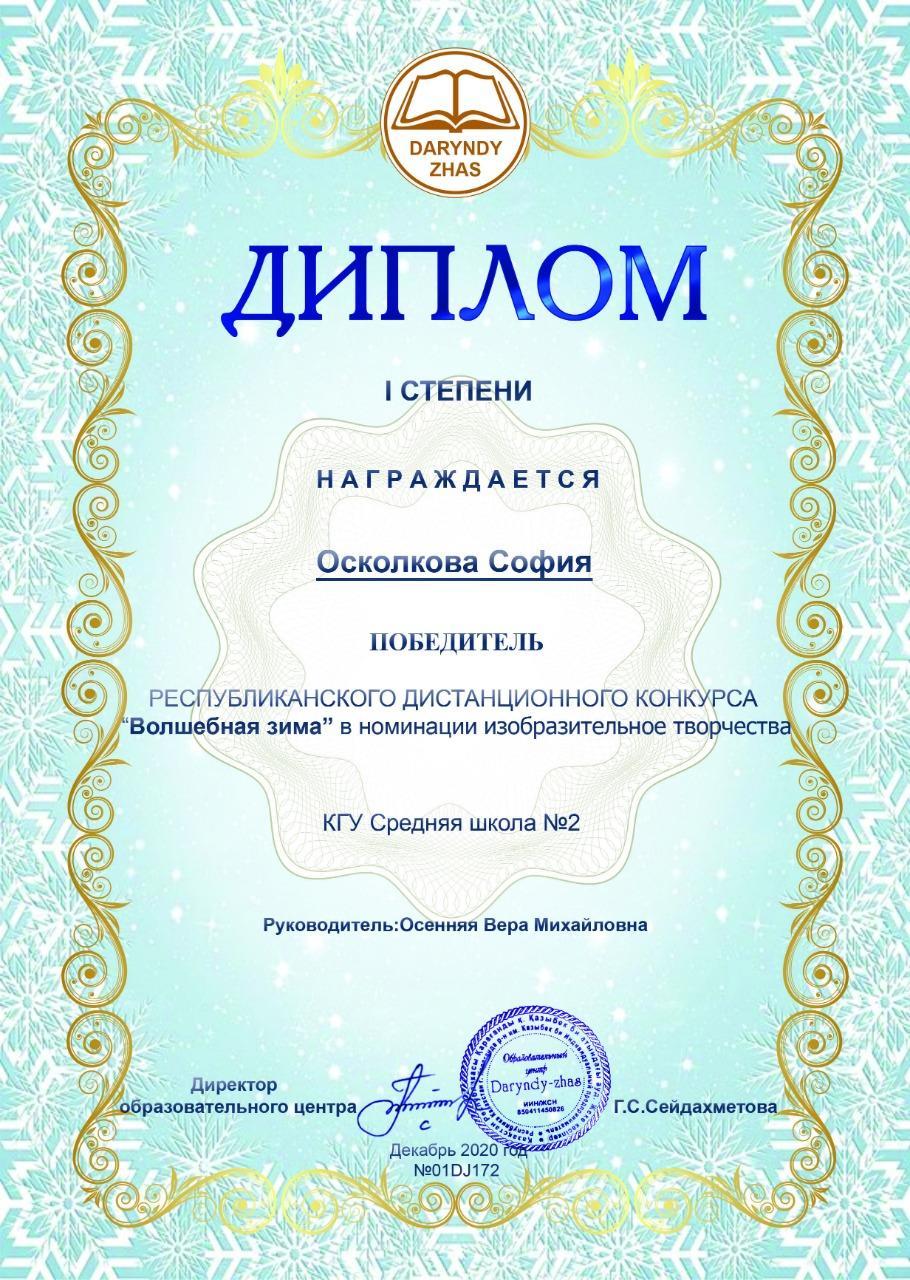 Диплом I степени, Осколкова София » СШ №2