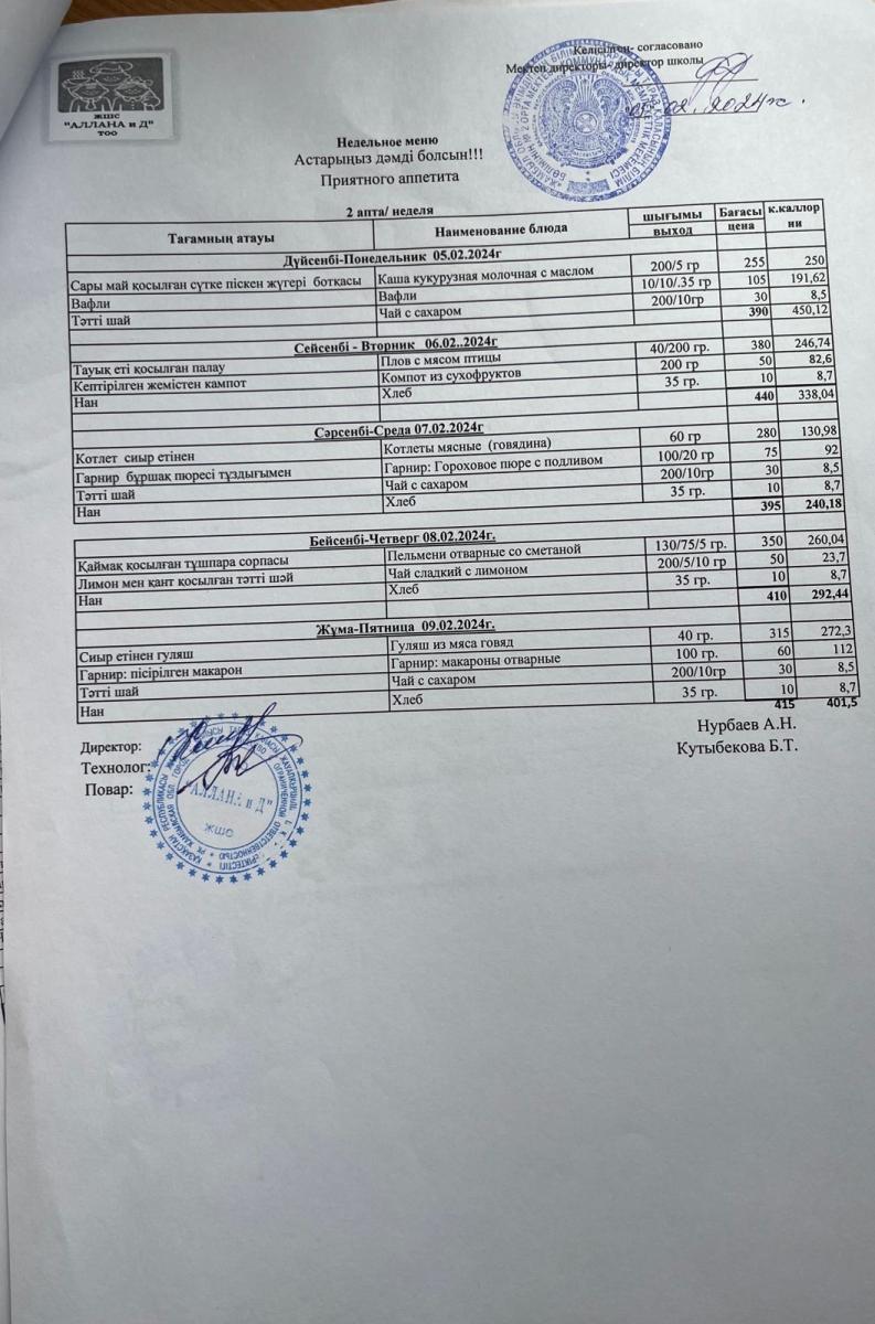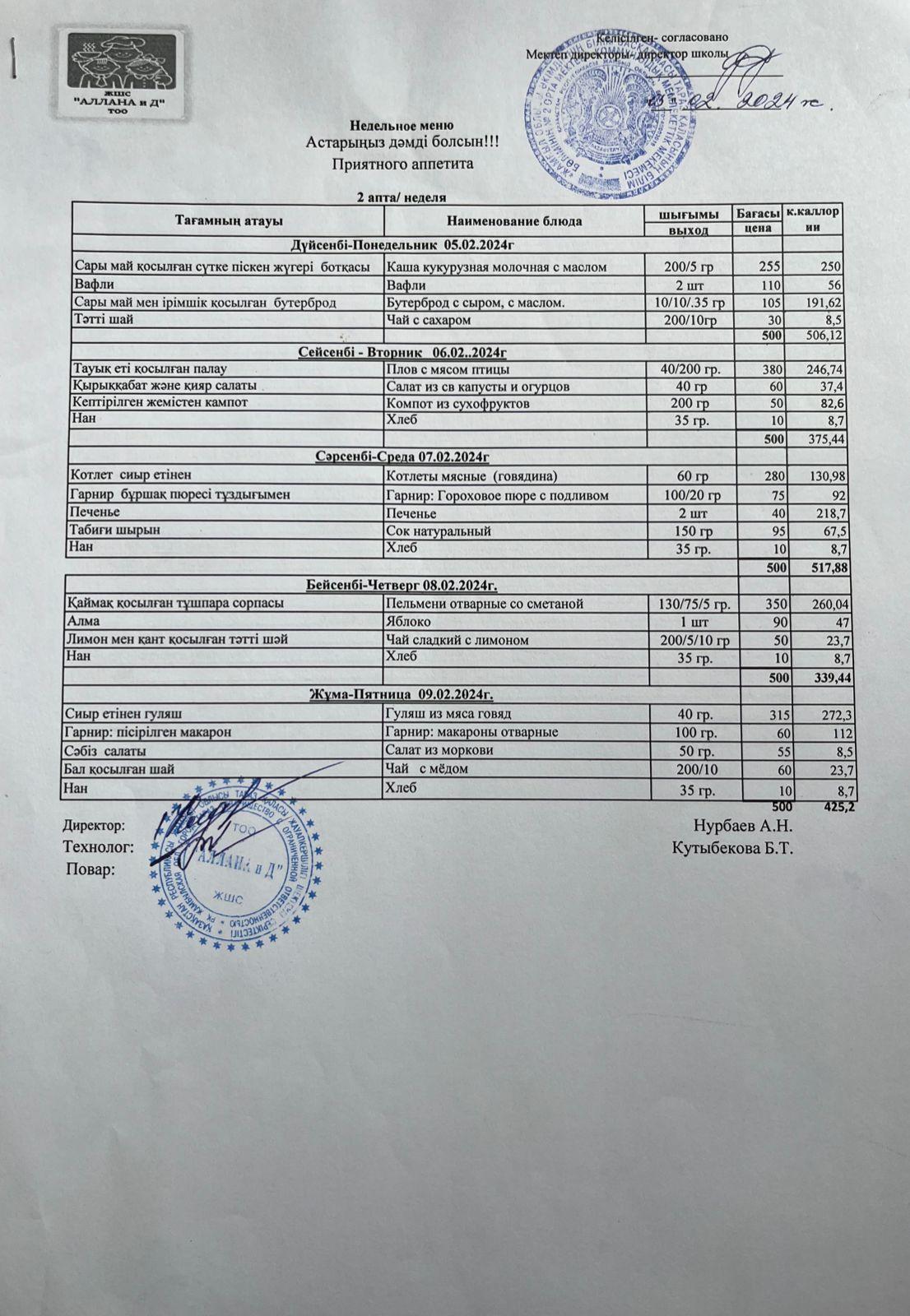 Меню 05.02.2024 » СШ №2