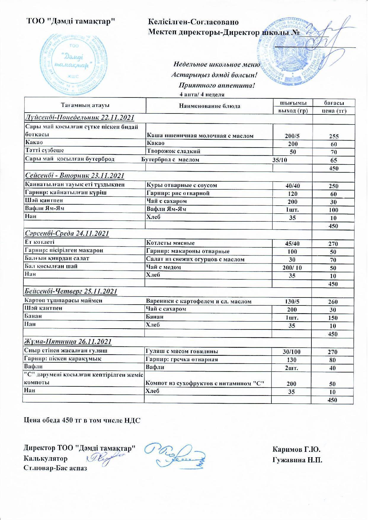 Недельное школьное меню 22.11-26.11.21 » СШ №2